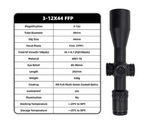 The AP4 3-12X44 FFP is perfect for shooters who prioritize portability, ease of use, and durability without sacrificing optical performance. Whether you’re in the field for hunting or tactical shooting, the AP4 provides reliable clarity and handling in every shot.